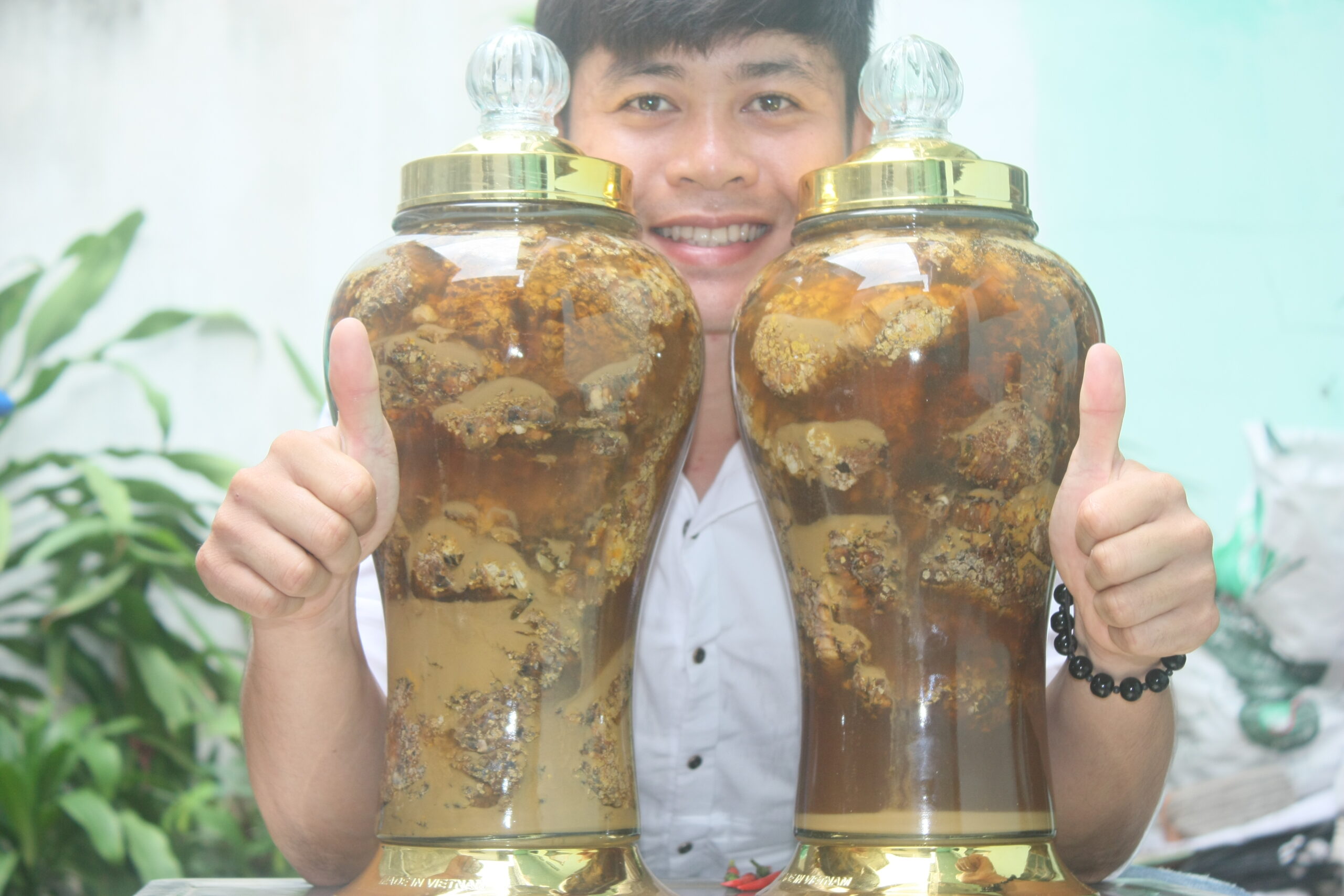 Thành Phần: 1,3 kg nhộng&sáp ngâm với rượu nếp 40 độ (rượu nấu thủ công).